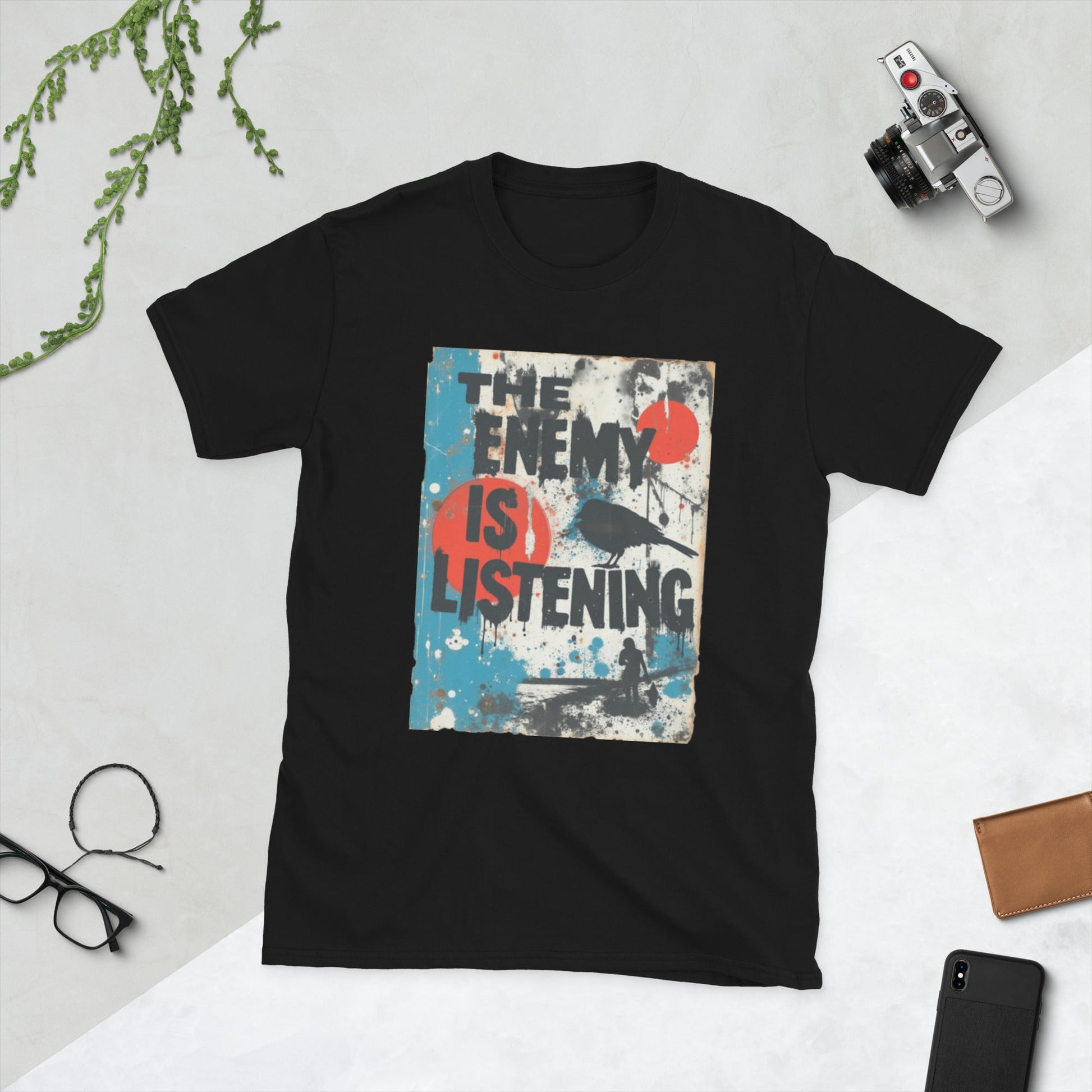 Elevate your style with bold artistic statements on a 100% ring-spun cotton t-shirt. Sizes for everyone. The double stitching on the neckline and sleeves add more durability to what is sure to be a favourite - and remember - The Enemy Is Listening!